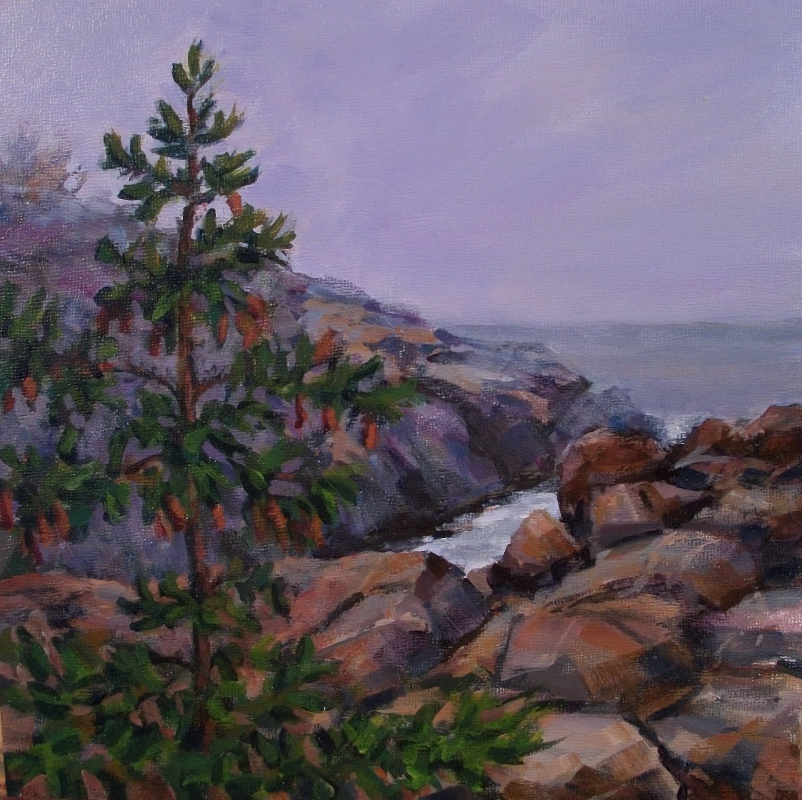 I painted this in acrylic using a veiling technique, and it measures 8"x8".